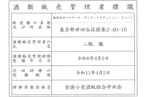 General Incorporated Association Terroir and Tradition Japan [Address] Shibuya Dogenzaka Tokyu Building 2F-C, 1-10-8 Dogenzaka, Shibuya-ku, Tokyo 150-0043, Japan |