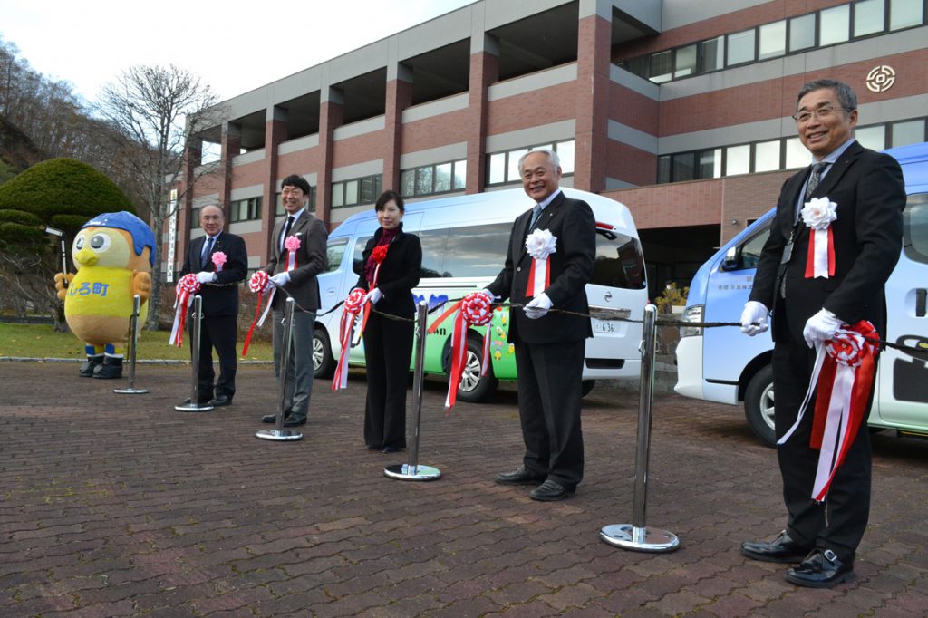 今年9月の路線バス廃止により、高齢者の通院や子どもたちの通学、町民の買い物等に影響を与えたことから、14人乗りと車いす対応10人乗りの2台を寄贈し、町民の生活に役立ててもらうことにしました。