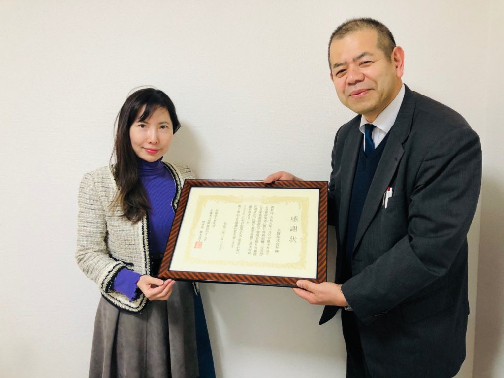 なお、これを受け、2020年2月20日、医療法人聖友会介護老人保健施設「やすらぎ」様より感謝状を授与いただきました。引き続き、弊社では地域振興に資する社会貢献に取り組んでまいります。