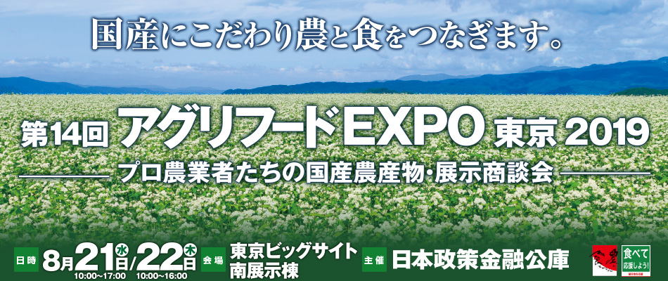 日本政策金融公庫が主催する、国産農産物をテーマとした全国規模の展示商談会、第 14 回「アグリフードEXPO東京 2019」(8月 21 日(水)~22 日(木)東京ビッグサイト南4ホール)において、新設される「物流相談コーナー」の一部を弊社が担当いたし、主に、少量多品種の青果物における国内外の流通についての相談を受け付けます。